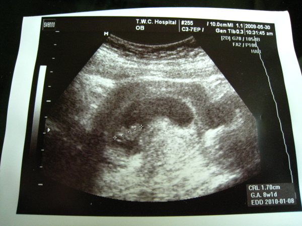 就笑著說:我八周了,最後一次MC的第一天是四月一號。