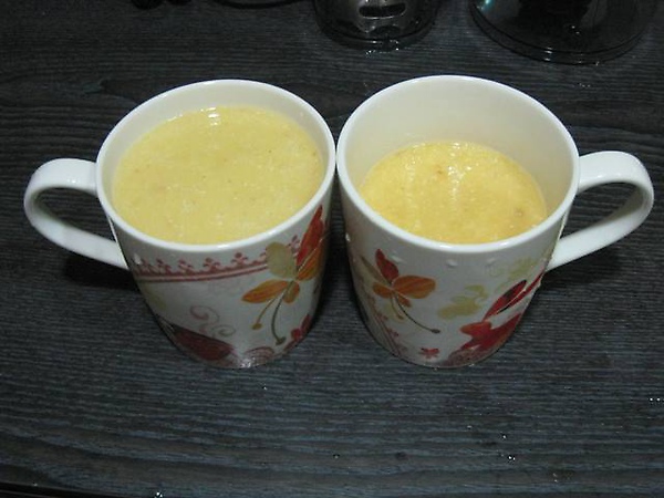 右邊是我的,我喜歡喝原汁果泥,所以就比較少一些。