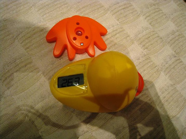 把鴨子拿起來,背面的LED就會顯示溫度,放回去就是關機