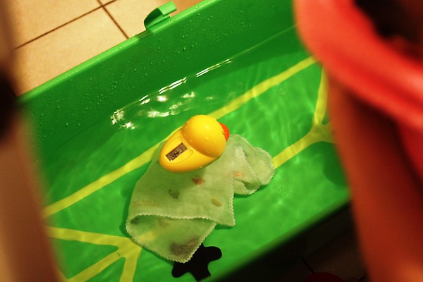 還記得小蘋果剛回家的第一個星期,我也是每天先拿溫度計測水溫