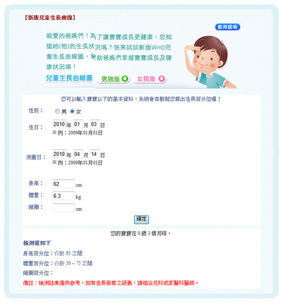 M群上的荳媽分享了一個很好用的線上新版兒童生長曲線落點網站,