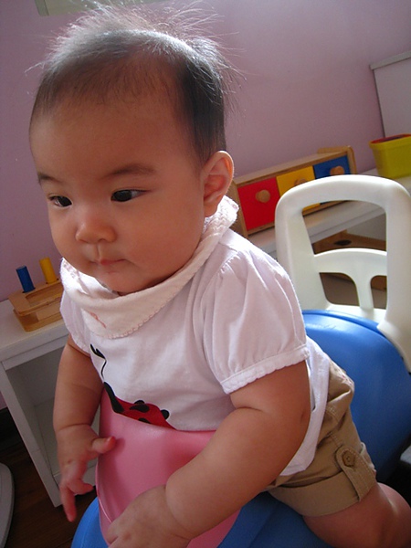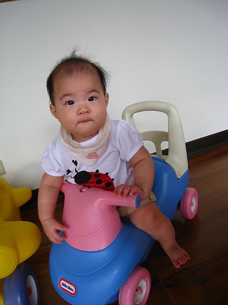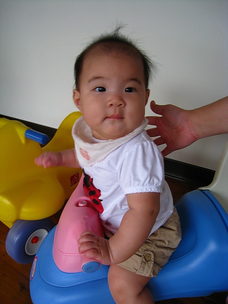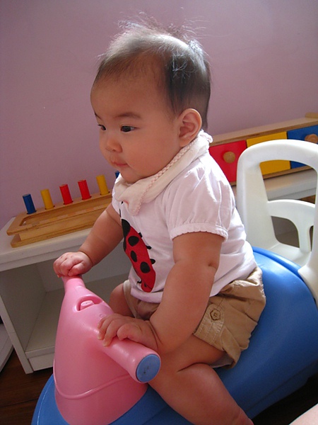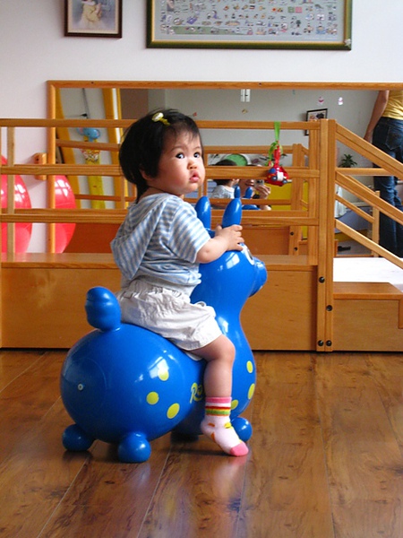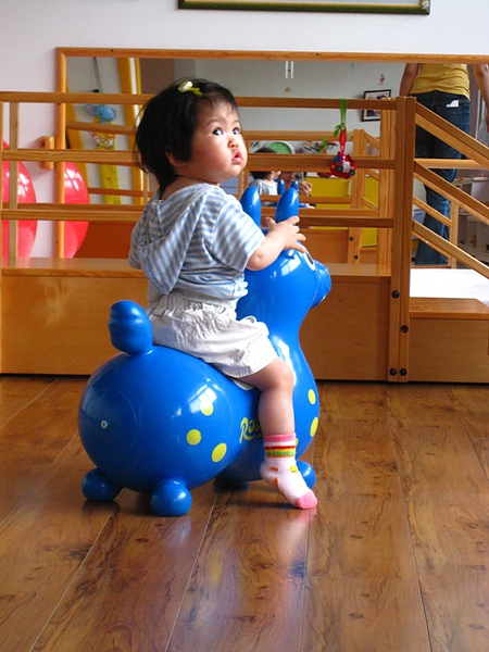 小澍在騎跳跳馬還回眸,真是美女驀然回首阿!(有看到鏡子裡澍媽曼妙的身材嘛?)