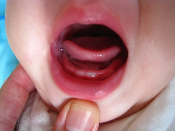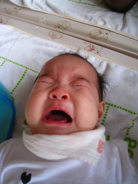 趁著蘋果大哭拍一下,蘋果的小牙齒已經冒出來了。