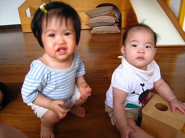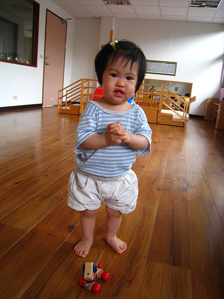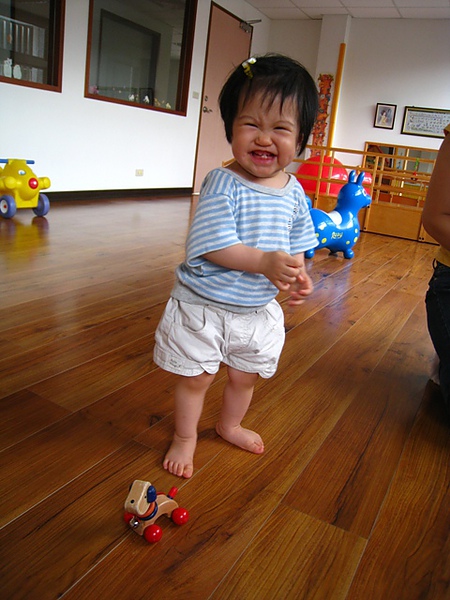 小澍則在玩地上那隻木頭小狗狗~玩得好開心唷!