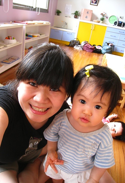 只是哭哭之後很黏媽咪,抱著蘋果就不太能拍照了~