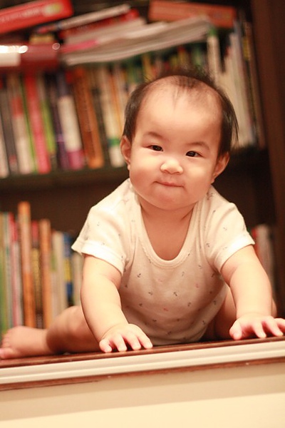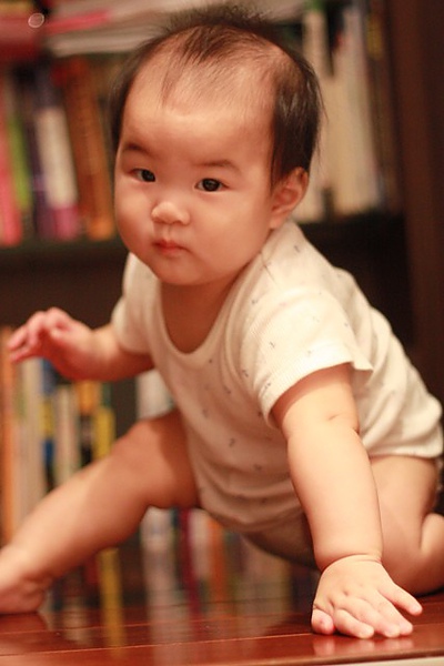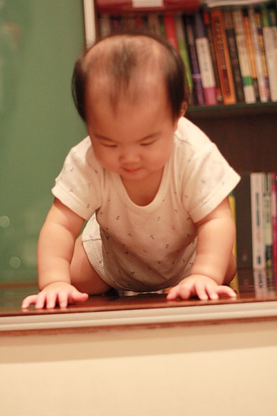 雖然八個月的蘋果活動力驚人,四處爬,