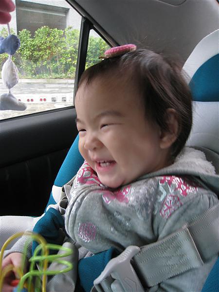 眼睛看著我,腳卻踢著餐盤玩具玩,然後又自己自得其樂的走來走去~