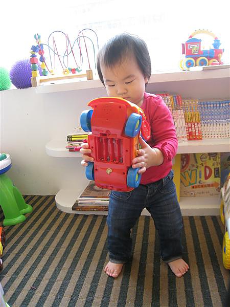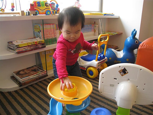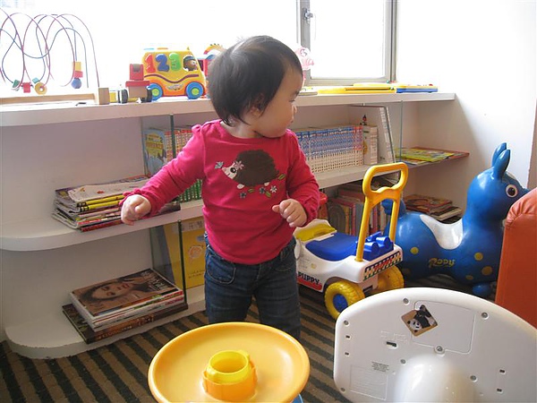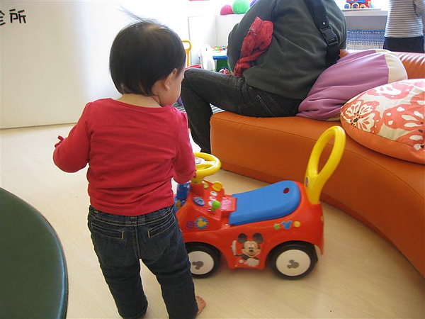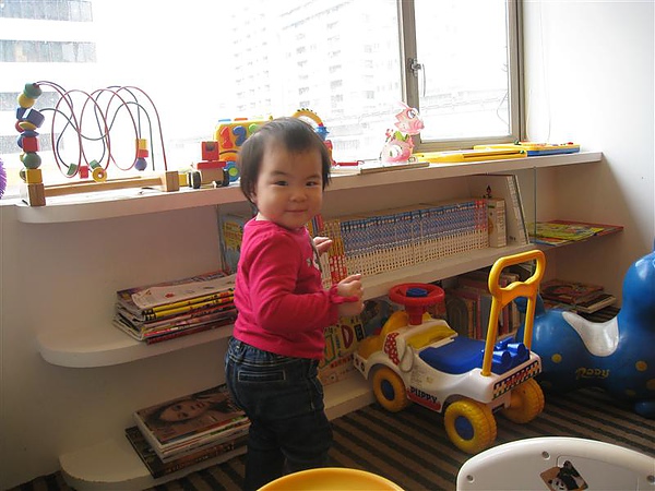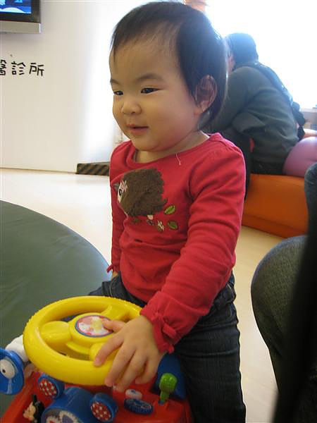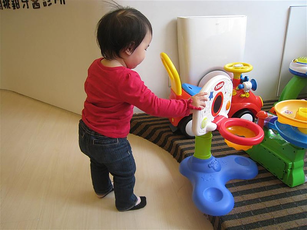 候診區後方有許多玩具,我一向不希望蘋果去玩那些玩具,