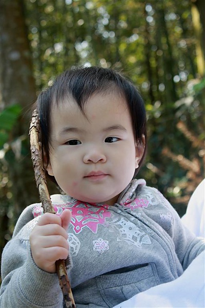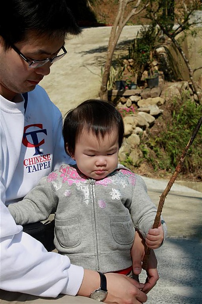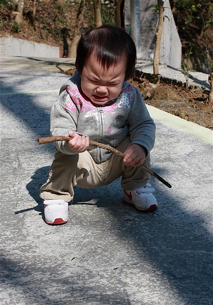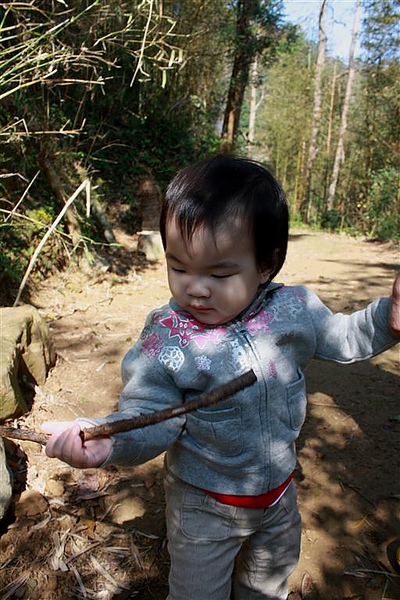蘋果爸隨地拾起一支乾淨的小樹枝給蘋果,