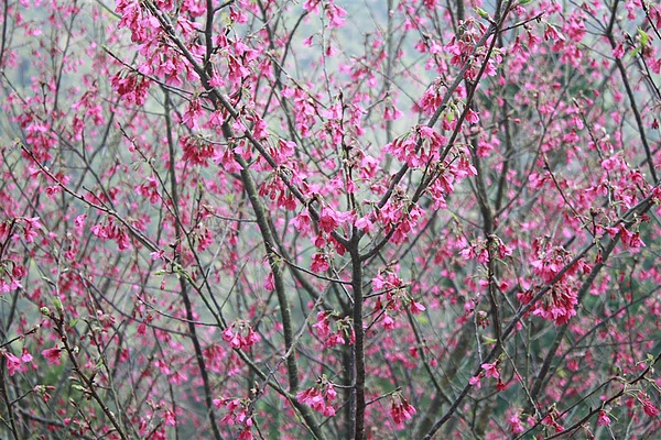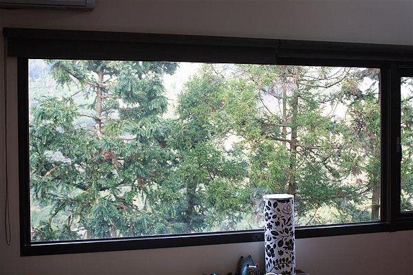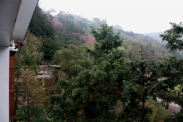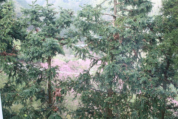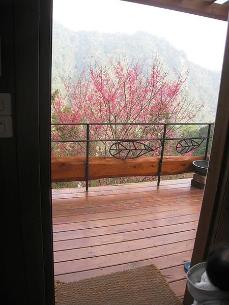 從房門往外看可以看到幾棵盛開的櫻樹,
