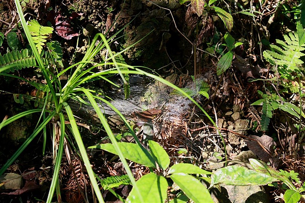 在步道邊看到一張好美的蜘蛛網,