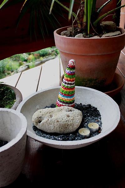 植栽上放著可愛的擺設,