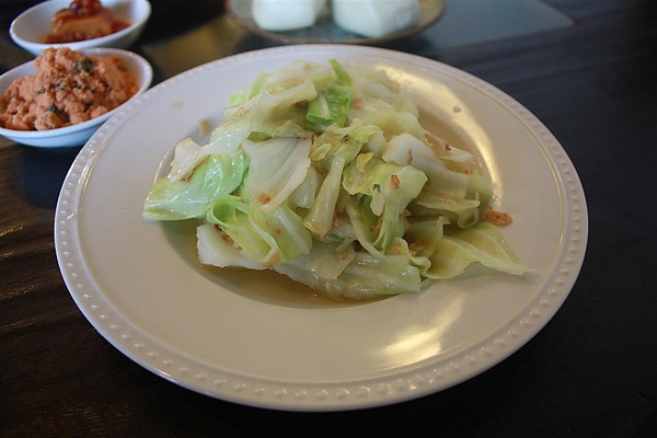 本以為就這樣,沒想到還有一盤現炒的高麗菜,讓我們一早吃的又飽又滿足。