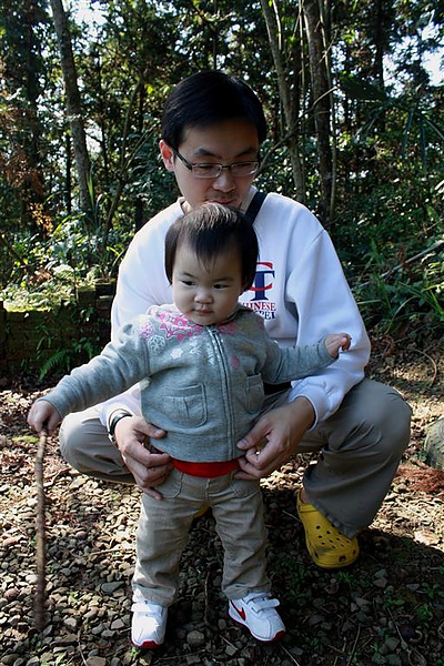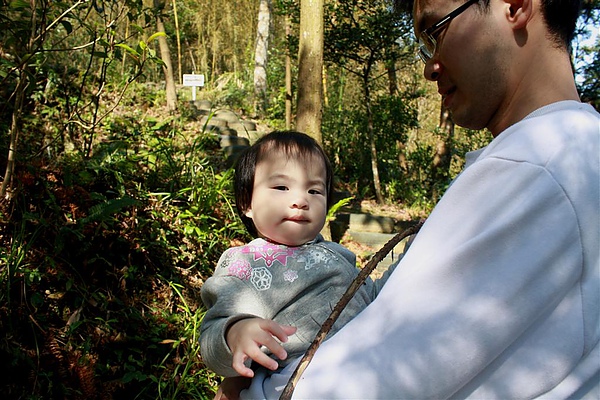 先抱著蘋果走10分鐘上坡之後,就到了可以放她下來牽著走的平路,