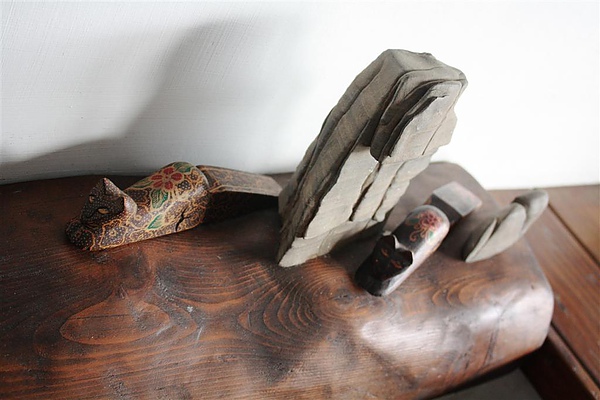 這是用枯木作成的掛衣區,