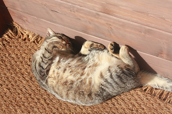 竟然發現這隻小貓在煦煦冬陽下翻著肚子沉沉的睡著,真是太可愛了。