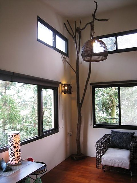 而從床往另一側看,有一個店東自己設計的吊燈,