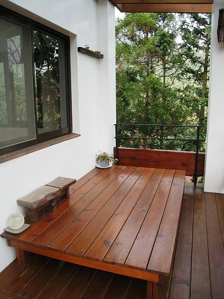 房門外有著一塊可以坐臥的平台,