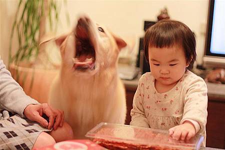 阿弟在旁邊裝乖巧,但是,這個狗狗不能吃唷~