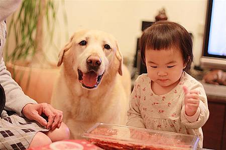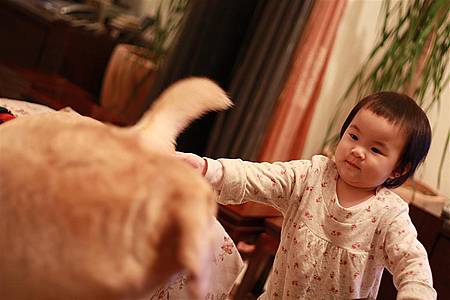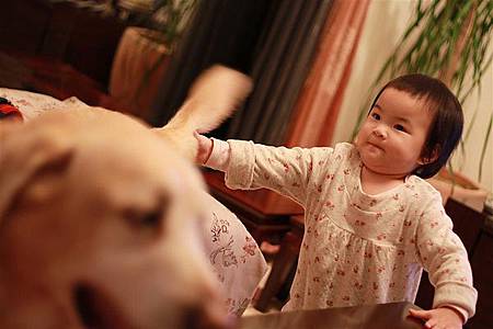 還好弟弟脾氣好,你可別去拉別人家的狗狗尾巴唷!