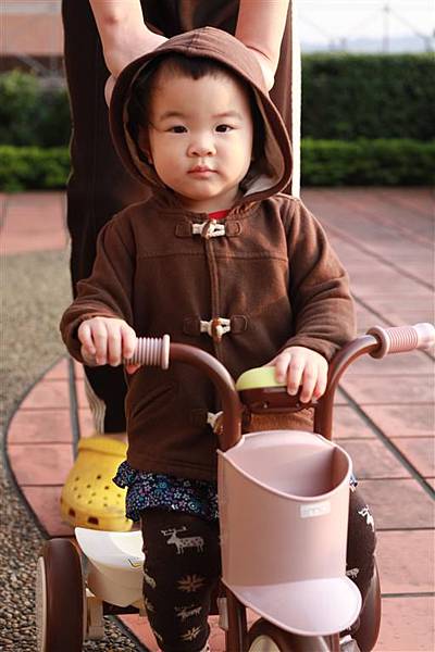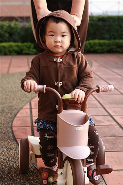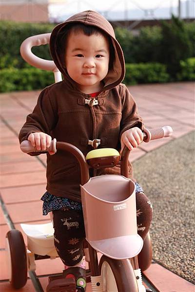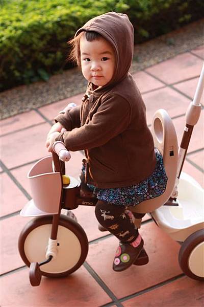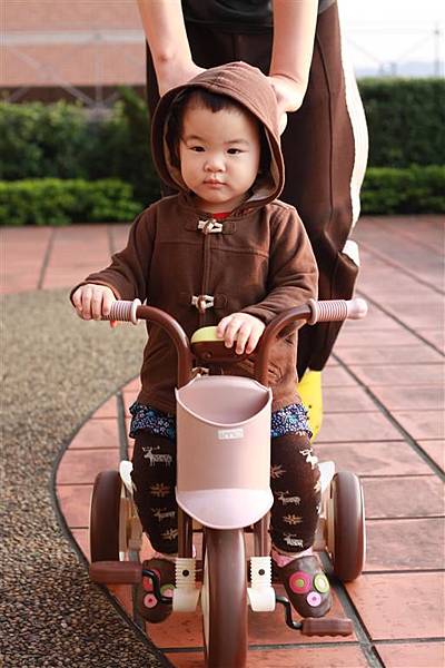 等他可以自己踩前輪踏板之後,一定會更喜歡騎三輪車吧!