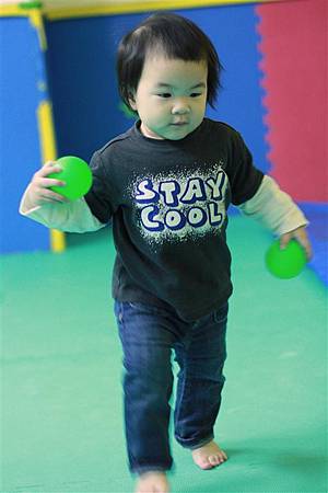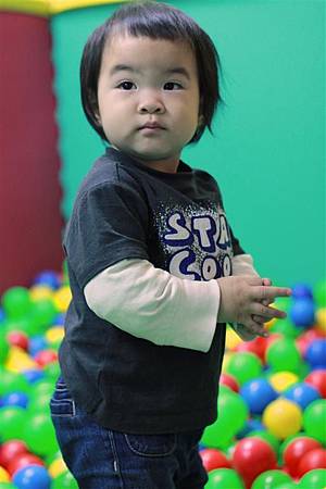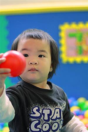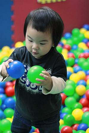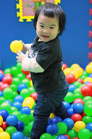 前面幾次蘋果剛開始接觸球池,還不知道該怎玩,