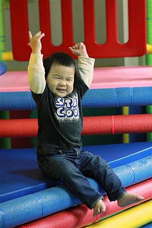 球池玩一陣子之後,就爬高高休息,