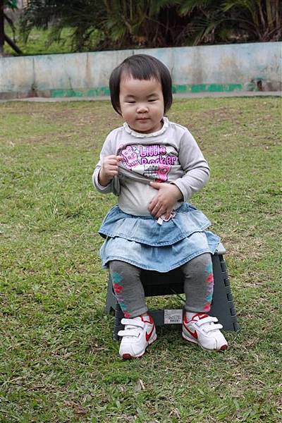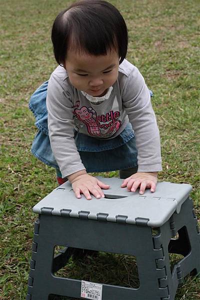 很囧的事情是:今天帶了這個椅凳,只要一到定點,蘋果就硬要坐在上面,