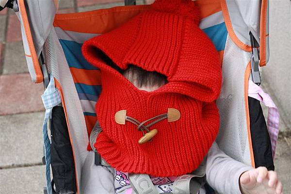 本來要讓蘋果用小紅帽披肩的,但她今天就是不想穿那件,