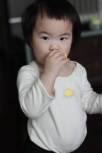 最近大概因為長牙,突然又燒微開始接受奶嘴,不過比較像是當固齒器在咬~