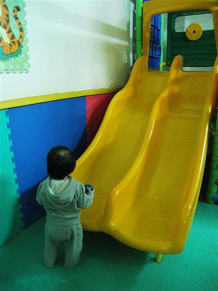 今天等蘋果午覺睡醒了,我打算再讓她去溜滑梯,