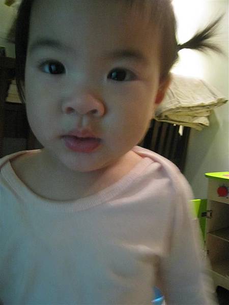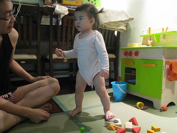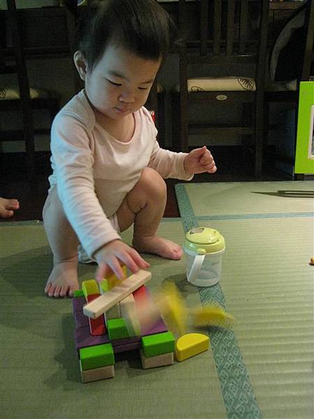 蘋果看著我們堆積木也興味盎然的猛瞧著,