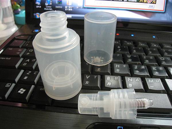 有瓶蓋、瓶身跟一個噴頭,真空不需要管子~:D