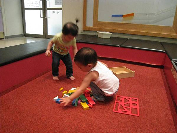 他們兩個完積木就玩了蠻久,後面有個軌道球也很好玩,