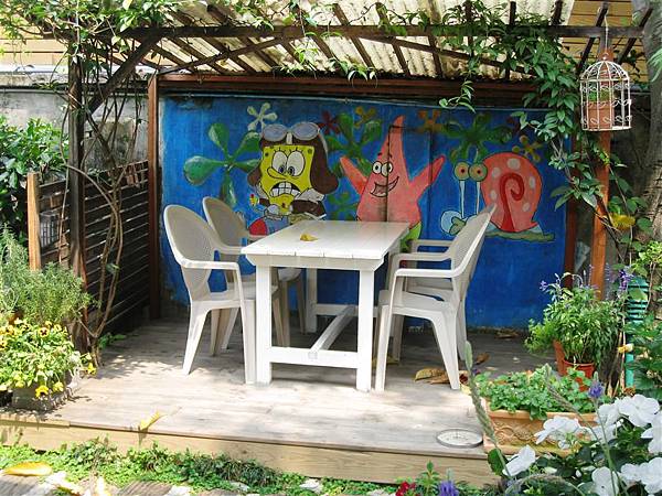 另一個位子旁邊還有一個可愛的神偷超人壁畫,