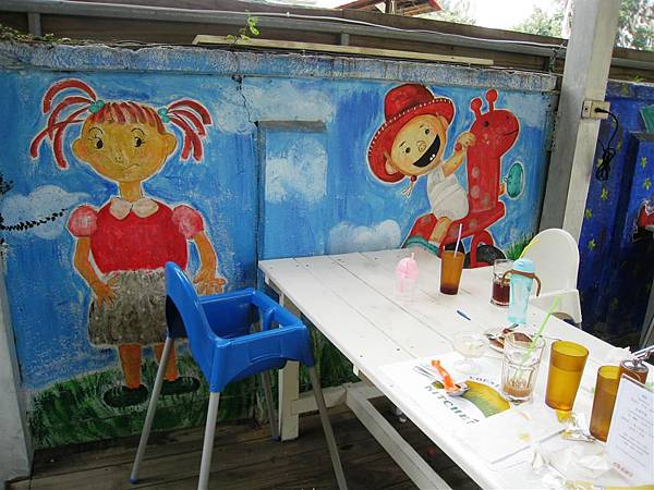 位子旁邊就友可愛的壁畫,小朋友都很喜歡,