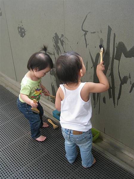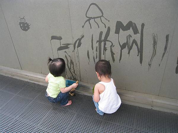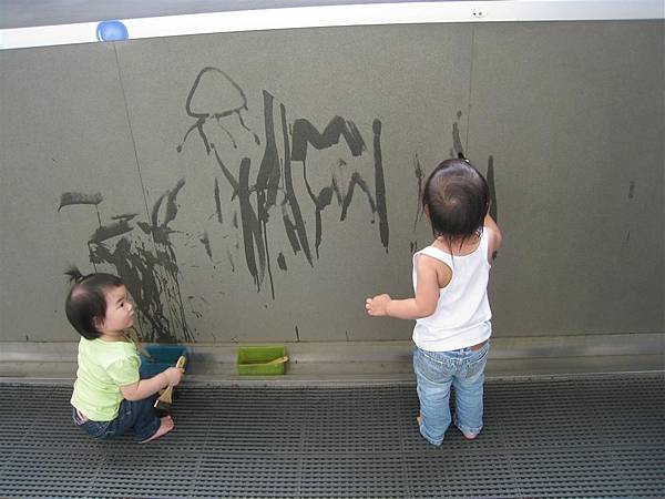 這裡用厚岩板做了一個很寬廣的繪圖區域,小朋友拿著刷子沾水就可以畫畫,