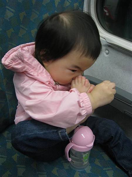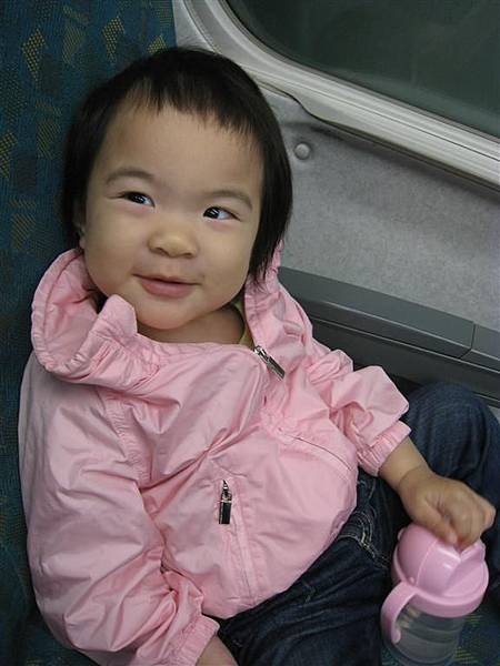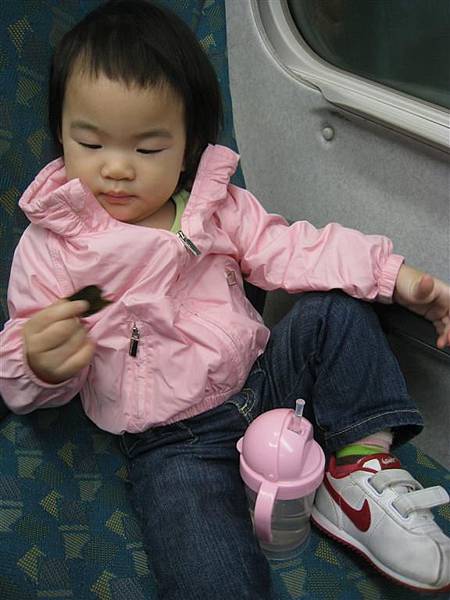 連臨坐的阿姨跟叔叔、阿公阿嬤都稱讚蘋果很乖哩!