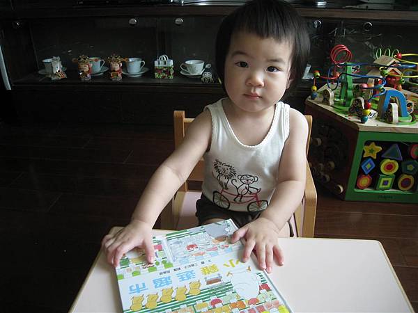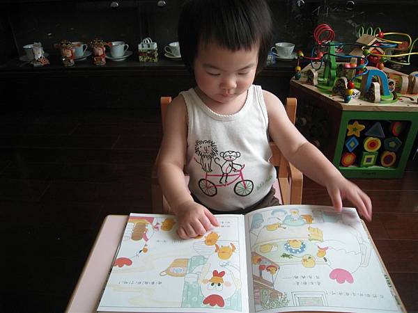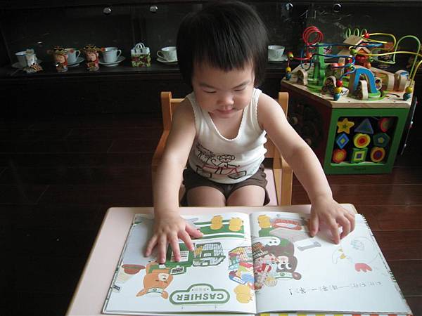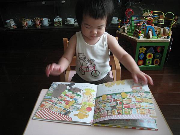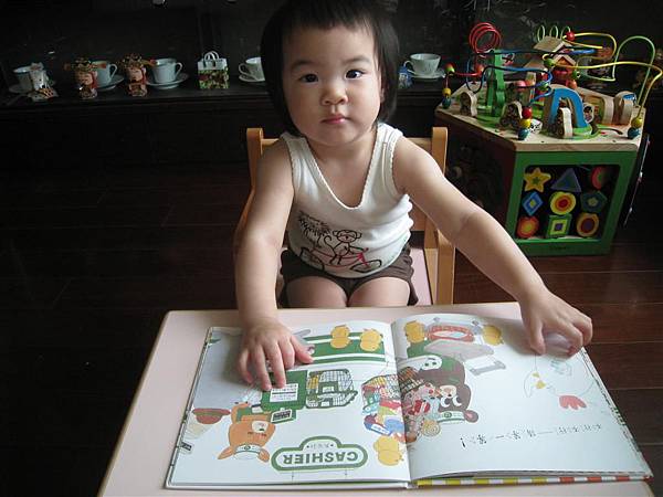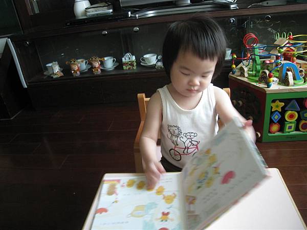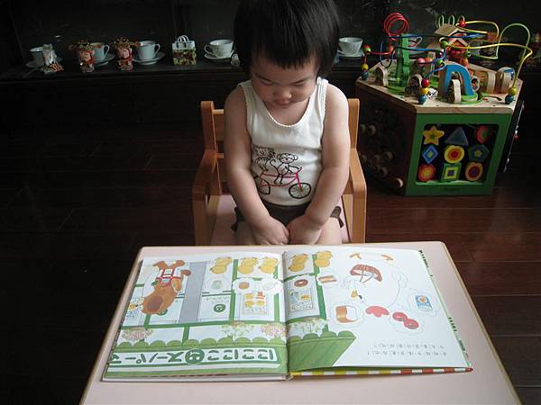 孩子開始會看書了,真的會自己捧著書去認真看耶~