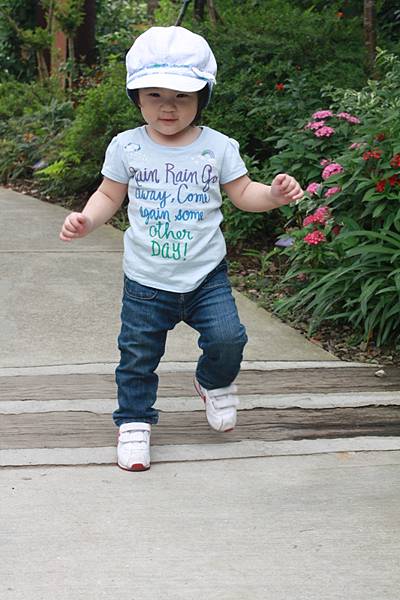停好車,蘋果帶著帽子很開心的準備要去玩了,