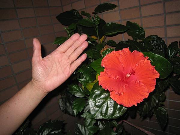 請蘋果阿嬤的手當比例,這花比手掌還大哩~