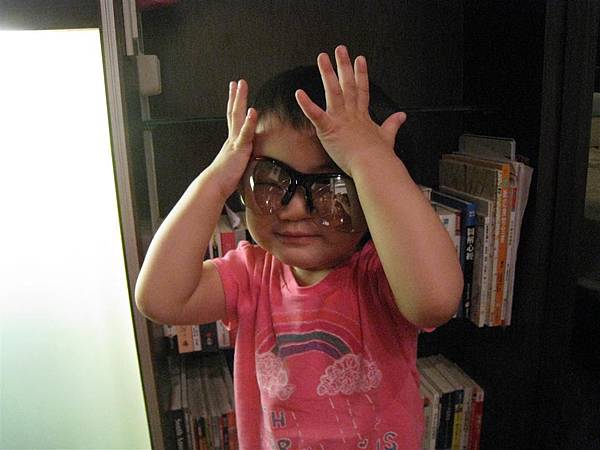 隨手幫這小傢伙戴上,模樣真是逗趣極了。