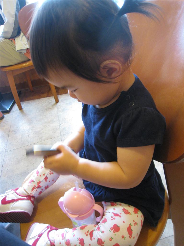 圖說:認真研究媽媽手機的王蘋果