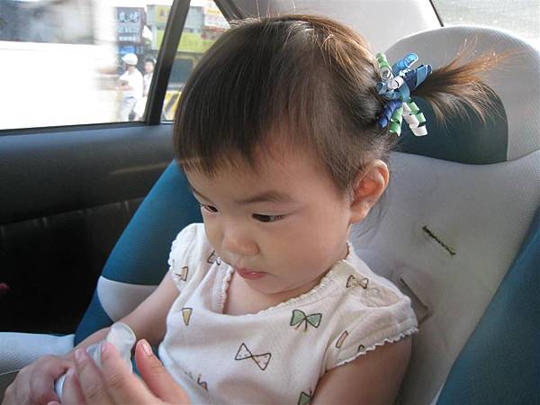路途中,我在車上跟蘋果玩耍,順手就拿起了相機拍拍照。