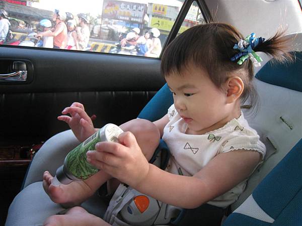 蘋果竟然開始模仿我幫她擦防蚊液的樣子,