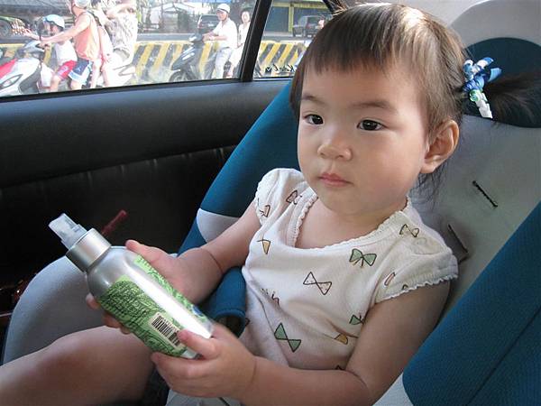 我隨手拿了平常慣用的BURT'S BEE防蚊液給蘋果研究,