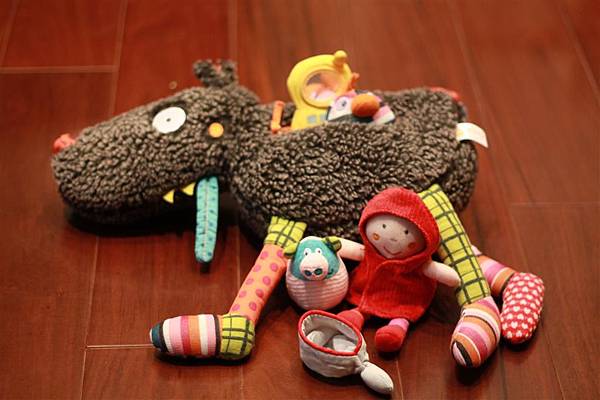 除了玩偶本身還有一些小配件,再加上大野狼與小紅帽的故事性發展,