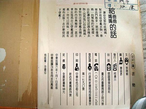 這是信誼基金會在民國71年,我還很小的時候出的童書:衣物。