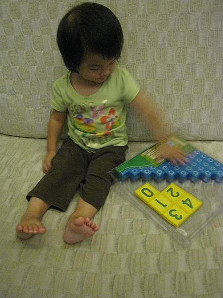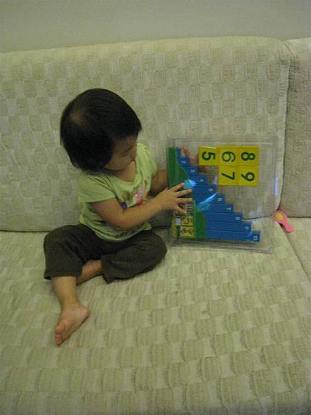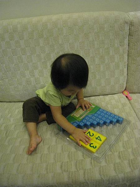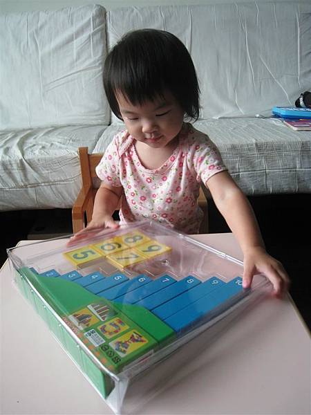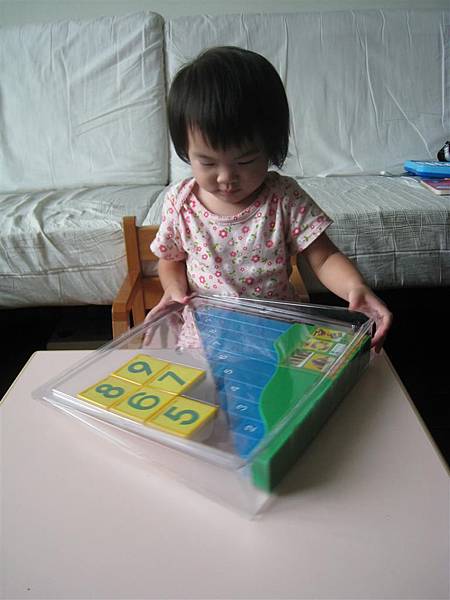 雖然這個教具建議的使用年齡是兩歲椅上,而蘋果才剛滿一歲半,