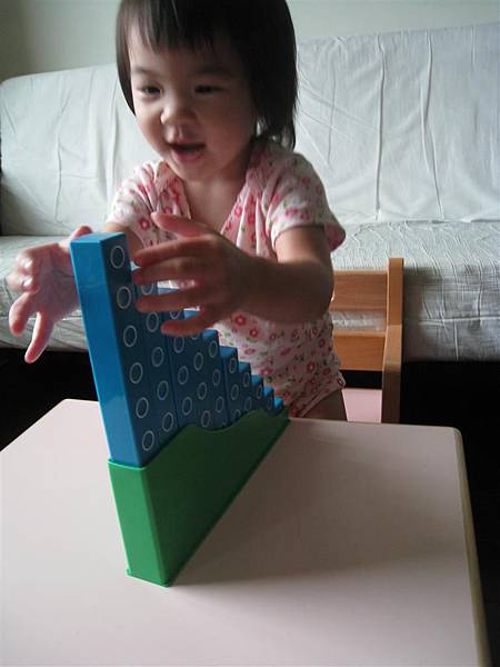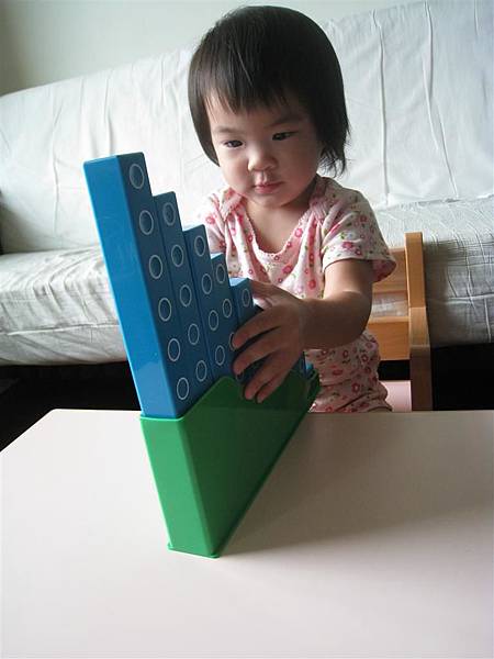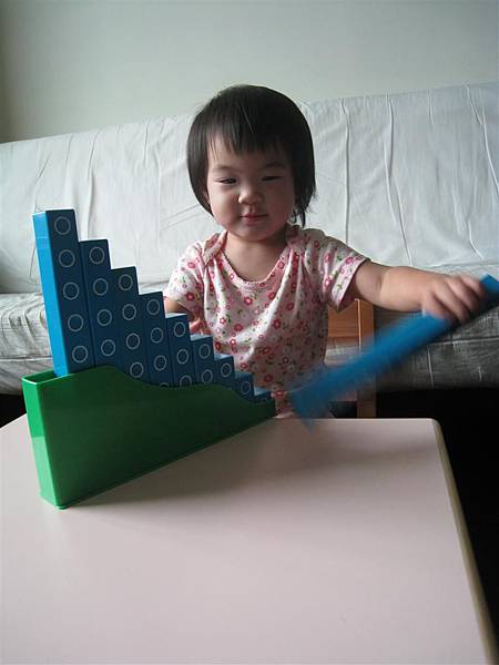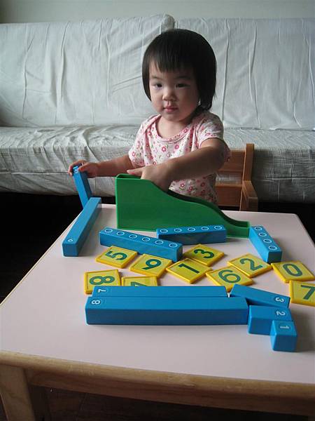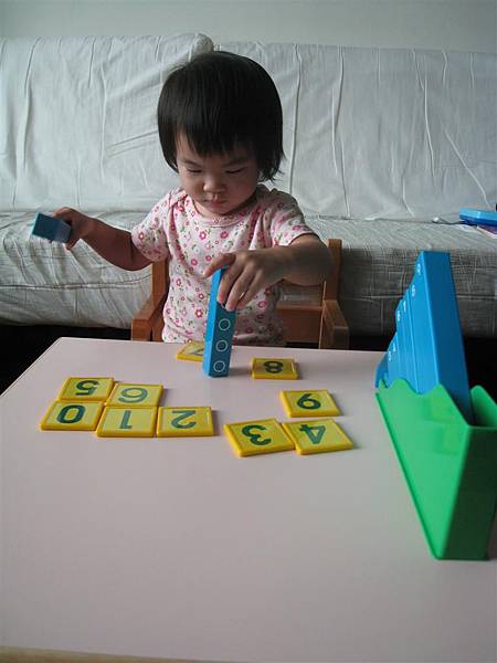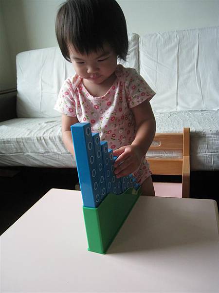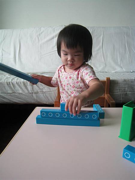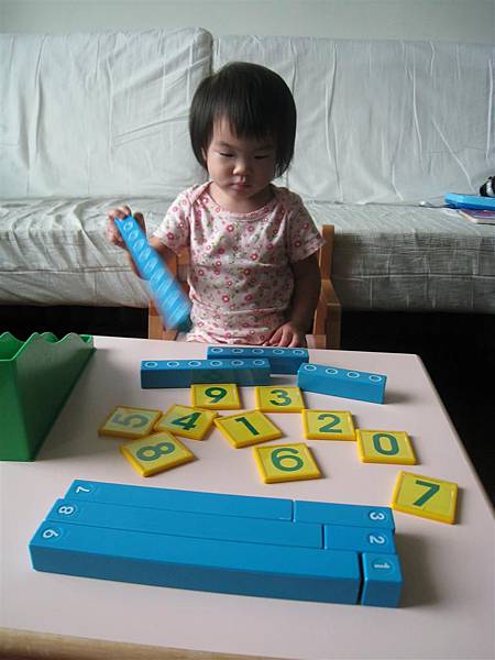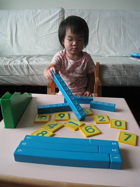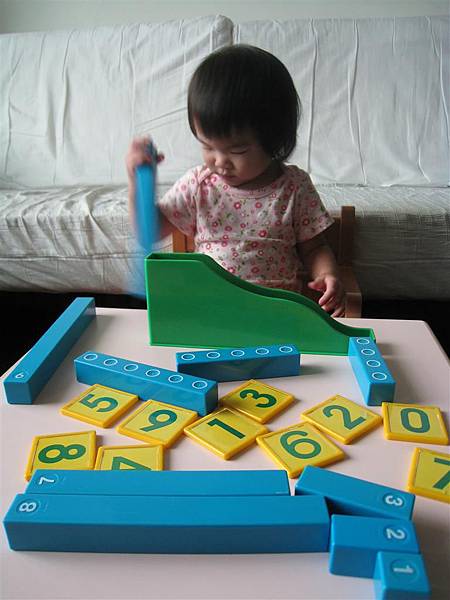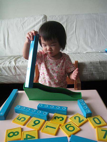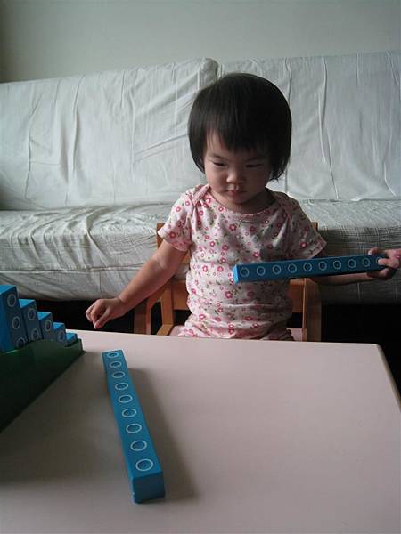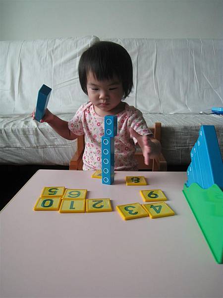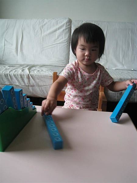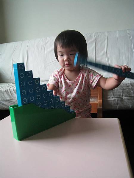 撇開數學不論,對一歲兒來說能把棒子全都放進去也是很棒的手眼協調練習,